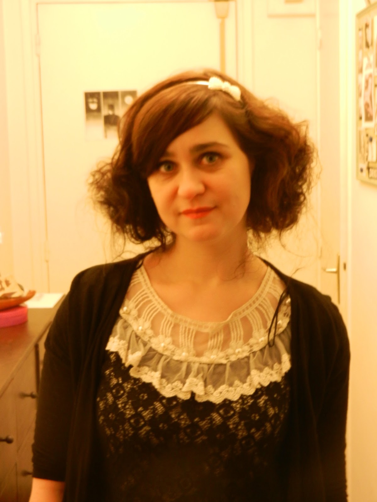 Mottoparties zu Geburtstagen finde ich eigentlich ganz nett. Das Motto 20er/30er Jahre brachte mich allerdings ein bisschen ins Schwitzen, denn das ist nicht so wirklich mein Stil und etwas Neues wollte ich mir nicht kaufen (war sowieso zu spät). Ich war gut eine Stunde zu spät auf der Feier, weil ich ewig durch meinen Schrank gewandert bin und mit meinen Haaren gespielt habe... die sind übrigens immer noch total verfitzt. (Seht mir mein müdes Gesicht nach, die Bilder (bis auf das mit dem Mantel) sind sehr spät entstanden.)
